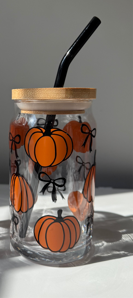 Pumpkins with Bows glass cup in 16oz